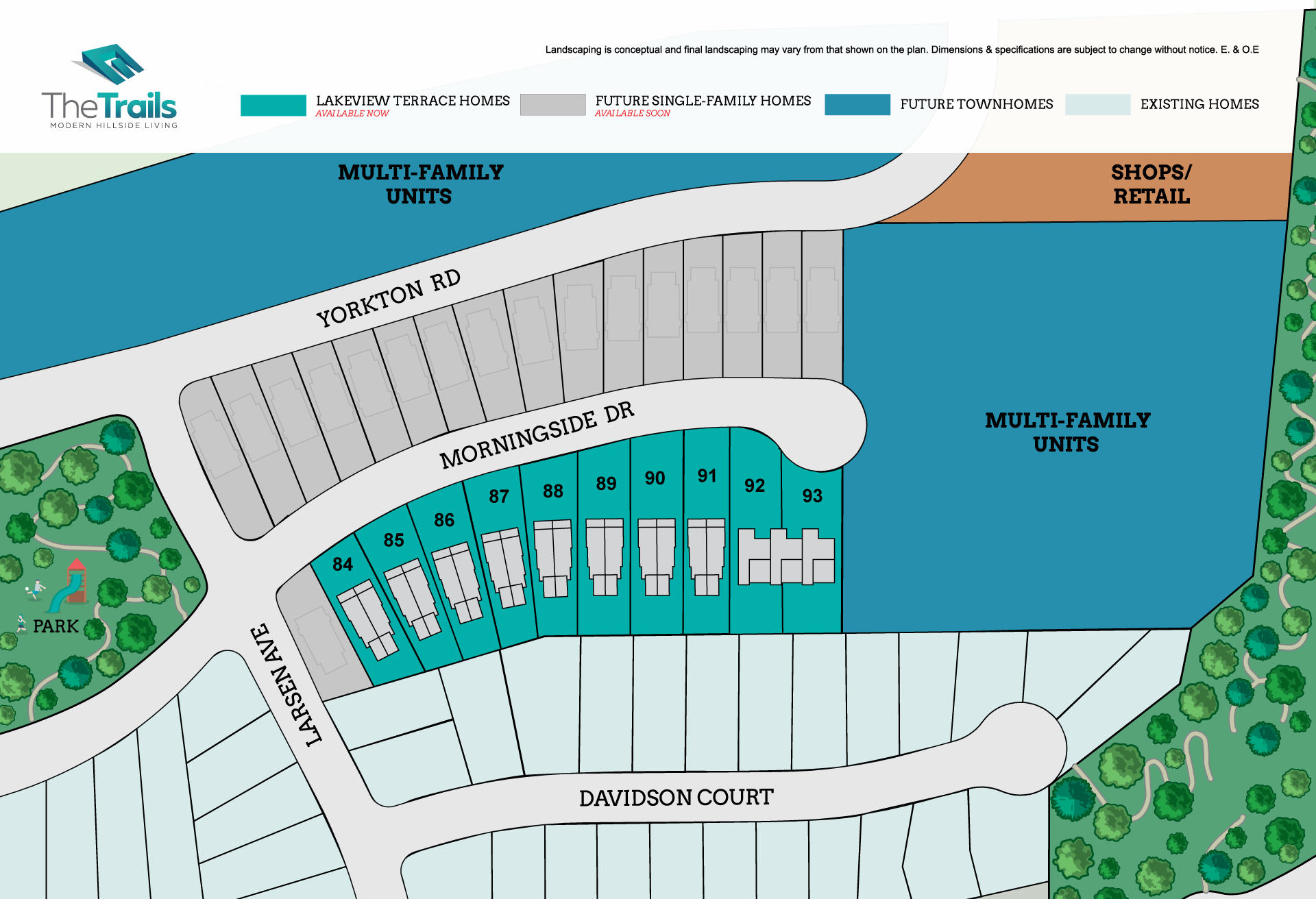The Trails Master Plan Community consists of 109 single family homes and 2 multifamily sites. Future retail and support services are planned right within The Trails community.